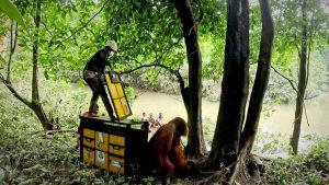 MEDAN, ForestEarth.id – Satu individu orangutan sumatra (Pongo abelii) jantan dewasa berhasil diselamatkan dari kepungan perladangan karet dan sawit di Desa